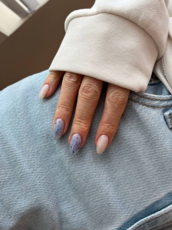 Нежный и необычный тренд — дизайн с сухоцветами. Такие элементы создают эффект миниатюрного гербария на ногтях и выглядят очень женственно. Сухоцветы часто используют на прозрачной или пастельной базе.