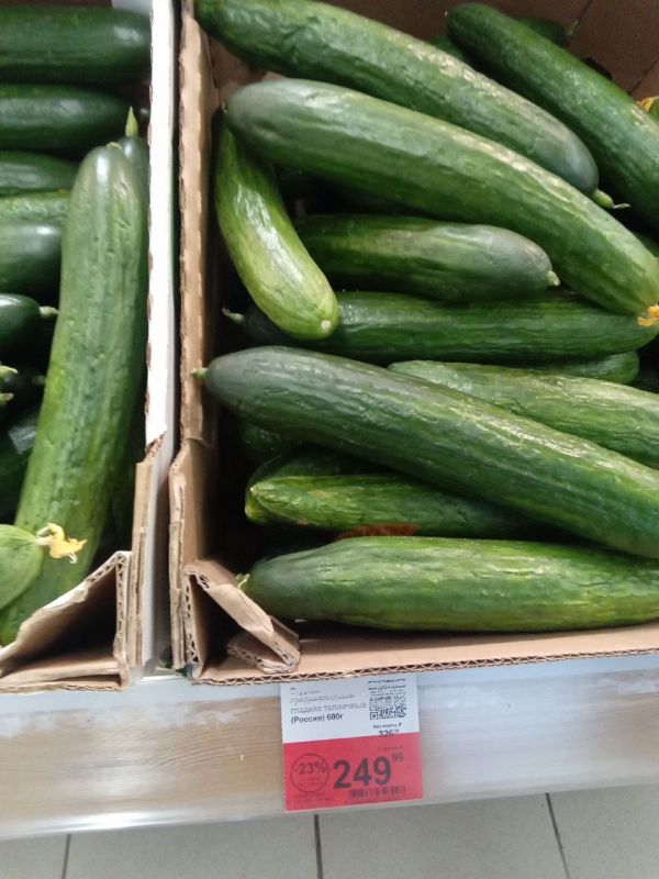 Таким образом, самые дешёвые огурцы, за 250 рублей за килограмм, мы нашли в супермаркете «Лента». Самыми высокими ценами отличился рынок — там цена на эти овощи достигает 650 рублей.