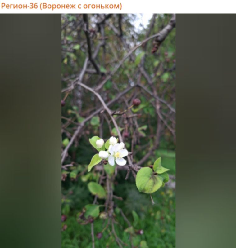 Яблоня внезапно зацвела в Воронежской области в сентябре