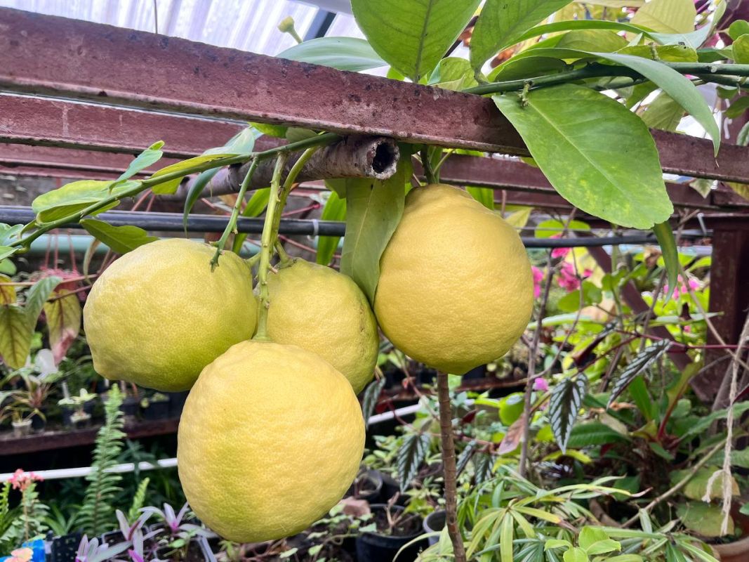 Это лимон сорта пандероза, уточняют сотрудники сада. Вид отличается внушительными размерами плодов.