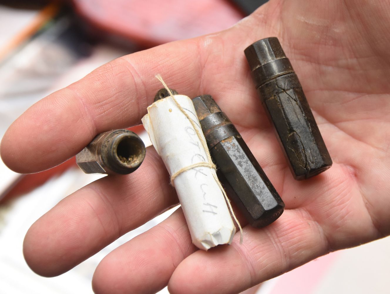 — Находим мы медальон бойца, вроде бы удача, открываем его — пустой. В 2019 году в районе домов № 17 — 19 по улице Хользунова рабочие рыли траншею под электрокабель, зацепили боеприпасы, а потом пошли останки бойцов. Там мы подняли 15 человек, у которых было 10 пеналов, три перебиты осколками. То есть они вскрылись, и содержимое — бумажка с данными бойца — истлело. Оставшиеся семь мы вскрыли и смогли прочитать лишь три фамилии. Потехин, Доброчев, Ищук. А родственников мы смогли найти лишь у третьего — Петра Филипповича Ищука 1923 года рождения. Все трое — сибиряки, — рассказал Андрей. — В медальон бойца закладывалась длинная скрученная бумажка типа анкеты со всеми его данными, заполненная им собственноручно, но многие из суеверия не делали этого и клали пустую бумажку — считалось, что заполненная приближает гибель. К тому же воевало много бойцов из среднеазиатских республик, плохо владевших русским языком. Анкеты им заполняли полковые писари и на слух могли ошибиться, записывая под диктовку бойца его имя, фамилию или место рождения. Отсюда частая неразбериха...