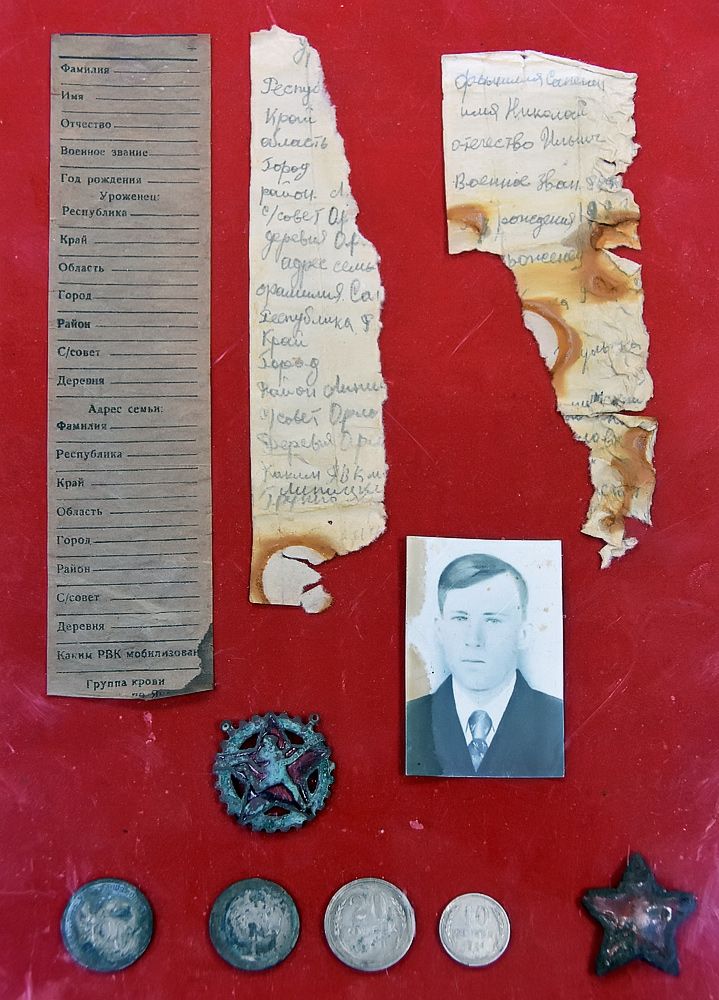 — Стало попадаться больше останков бойцов, при которых мало металла. Это война — кто-то у мёртвого в годы войны сапоги забрал, кто-то — оружие, гранату, фляжку. Раньше-то никаких металлоискателей не было в природе, и все поиски велись именно шомполами. То, что вы видите в нашем музее, — это сопутствующие находки, всё-таки цель поисковых отрядов не поиск техники или иных военных артефактов, а именно останков наших бойцов.