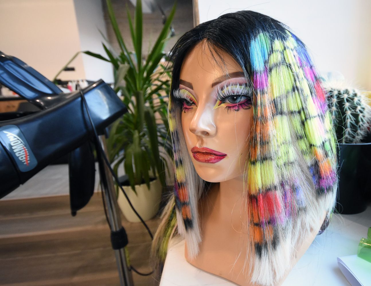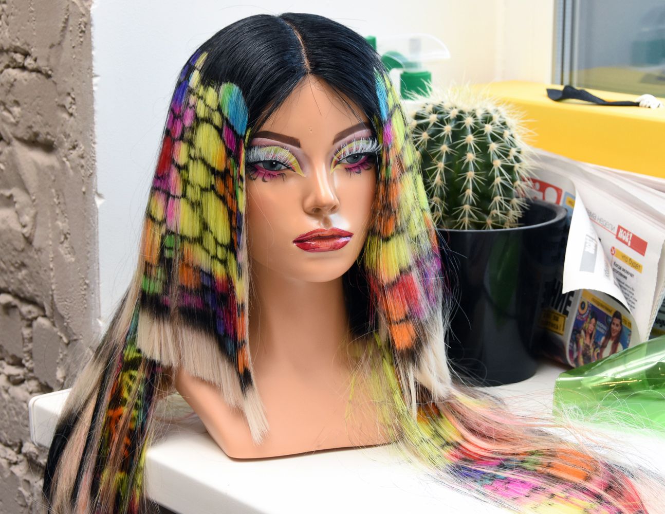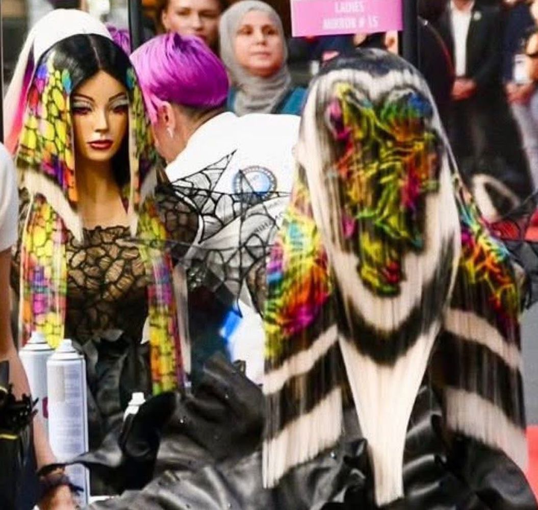 — Было очень много попыток, чтобы добиться нужного результата. Расписывали волосы вручную кистью для макияжа. Чтобы нанести рисунок, потребовалось несколько дней. Мы делали окрашивание заранее. Приехали туда уже готовые. Укладку делала на месте. Надо было сделать так, чтобы не было пробелов, чтобы рисунок был читаем. С блеском. Там было очень много критериев, и в итоге всё получилось, — объясняет мастер.
