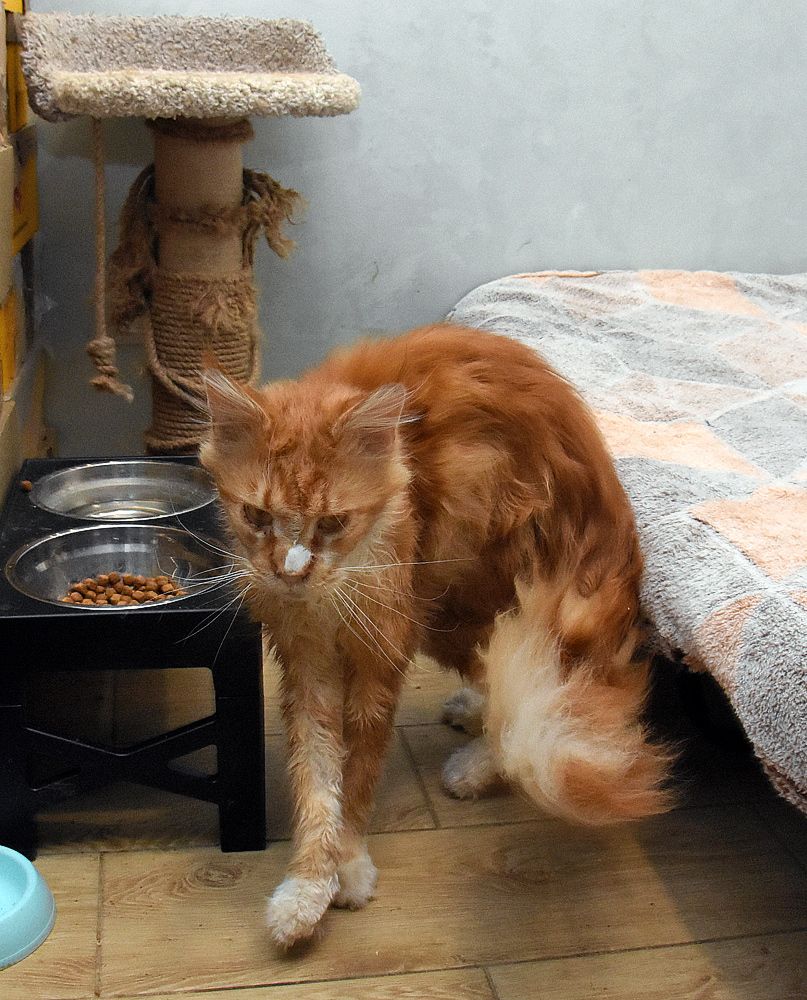 — Это наш Мэй — кот породы мейн-кун, который сейчас лицо нашей группы в «ВК» «Монастырские кошки. Помощь животным». Пару лет назад позвонил охранник из Хлевного и рассказал, что к ним под бытовку приполз кот. Вздыхает бедолага... Потянул за задние лапы — не лезет. Вытащили наконец, а он на последнем издыхании уже, собеседник спрашивает, что делать. А я ехала из Воронежа как раз. Посоветовала его обложить горячими бутылками и чем-нибудь прикрыть. Моя помощница приехала туда, забрала его и привезла в Задонск. Звонит мне и говорит, что с кота спрыгнули блохи, значит, он труп и уже остывает. Она его «замочила» на 40 минут в тёплой воде (положили в воду, только голову оставили на поверхности) и через час кот сделал первый тяжёлый вдох. Тогда мы повезли его в ветклинику, где кот пробыл три дня в гипогликемической коме (от истощения и переохлаждения у него упала глюкоза). Это был домашний мейнкун, которого молодая девушка купила на маркетплейсе у заводчика. Но потом он вырос в большого кота, хозяйка поняла, что не справится с ним, и перепродала его в село Хлевное. Там он поменял несколько хозяев, и в третий раз его перепродали уже за 5 тысяч в многодетную неблагополучную семью. Там кот голодал, бродил по мусоркам. Из-за дефекта век у него болели и гноились глаза, пришлось делать ему операцию. Сзади на бедре была онкология — опухоль, которую вырезали в клинике. За его выздоровлением многие следили в соцсетях: мы выкладывали все этапы. И после этого Мэй стал любимцем членов нашей группы, а также её официальным лицом. Практически мы воскресили труп, — рассказывает «мама» всей это мяукающей и лающей компании.