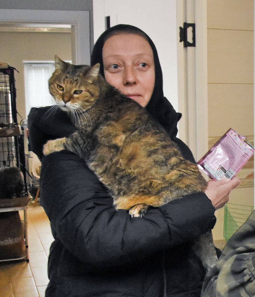 — Как-то поехала пристраивать в село котят, а на обратном пути увидела на дороге сидящий скелетик — заклеенные гноем глаза, обожжённое тельце, подобрала, не надеясь, что спасу. Подумала, что животное попало в двигатель грузовика, а потом выпало оттуда. Я оставила её у себя, вылечила, с ней всё хорошо, это моя любимая кошка. Когда болела ковидом, моя келейная Любимка спала у меня в ногах. Но когда у меня началась жёсткая пневмония, лежала у меня только на груди. Кошка меня вылечила. А когда я выздоровела, она перестала ложиться ко мне на грудь. Так что мы с ней квиты — спасли друг друга...