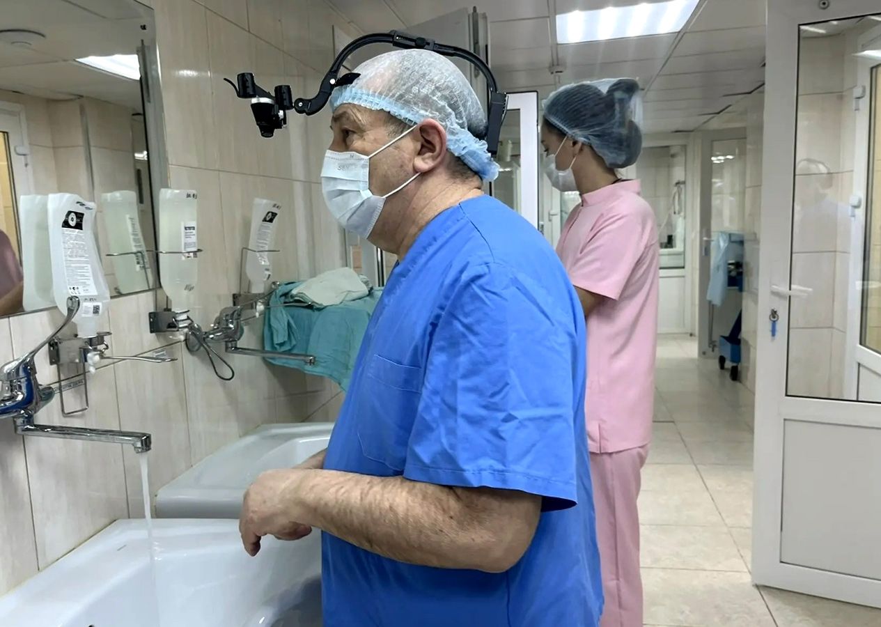 — Случай интересный не только в медицинском отношении, но и в социальном. Пациентка — активная участница СВО, ездила и продолжает ездить на передовую. Мать троих сыновей. Старший погиб, двое других после ранений, с неизвлечёнными осколками, продолжают воевать. В этой бурной жизни она запоздала с диагностикой. Обратилась, только когда у неё перестала проходить пища. Её прооперировали по месту жительства. Оказалось, что опухоль в выходном отделе желудка полностью перекрывала просвет и не позволяла питаться. Обнаружились и множественные отсевы (метастазы, хирургическое вмешательство малоэффективно) опухоли. Четвёртая стадия. И мы в этой ситуации опухоль удалять не стали, а наложили обходной анастомоз — подшили кишку к желудку на участке выше опухоли, чтобы женщина могла питаться, чтобы пища из желудка смогла поступать в кишечник. После этого пациентку направили на химиотерапию. Провели 12 курсов и получили очень хороший эффект: отсевы (метастазы) перестали определяться на КТ, сама опухоль уменьшилась в размерах. И лапароскопия показала: отсевов опухоли нет. Химиотерапия дала хороший результат. Вчера мы пациентку прооперировали. Удалили часть желудка. Убедились, что отдалённых метастазов нет. (На лице доктора появляется улыбка.) Пока прошло меньше суток, но больная уже чувствует себя хорошо. Будем сегодня переводить её из реанимации в отделение.