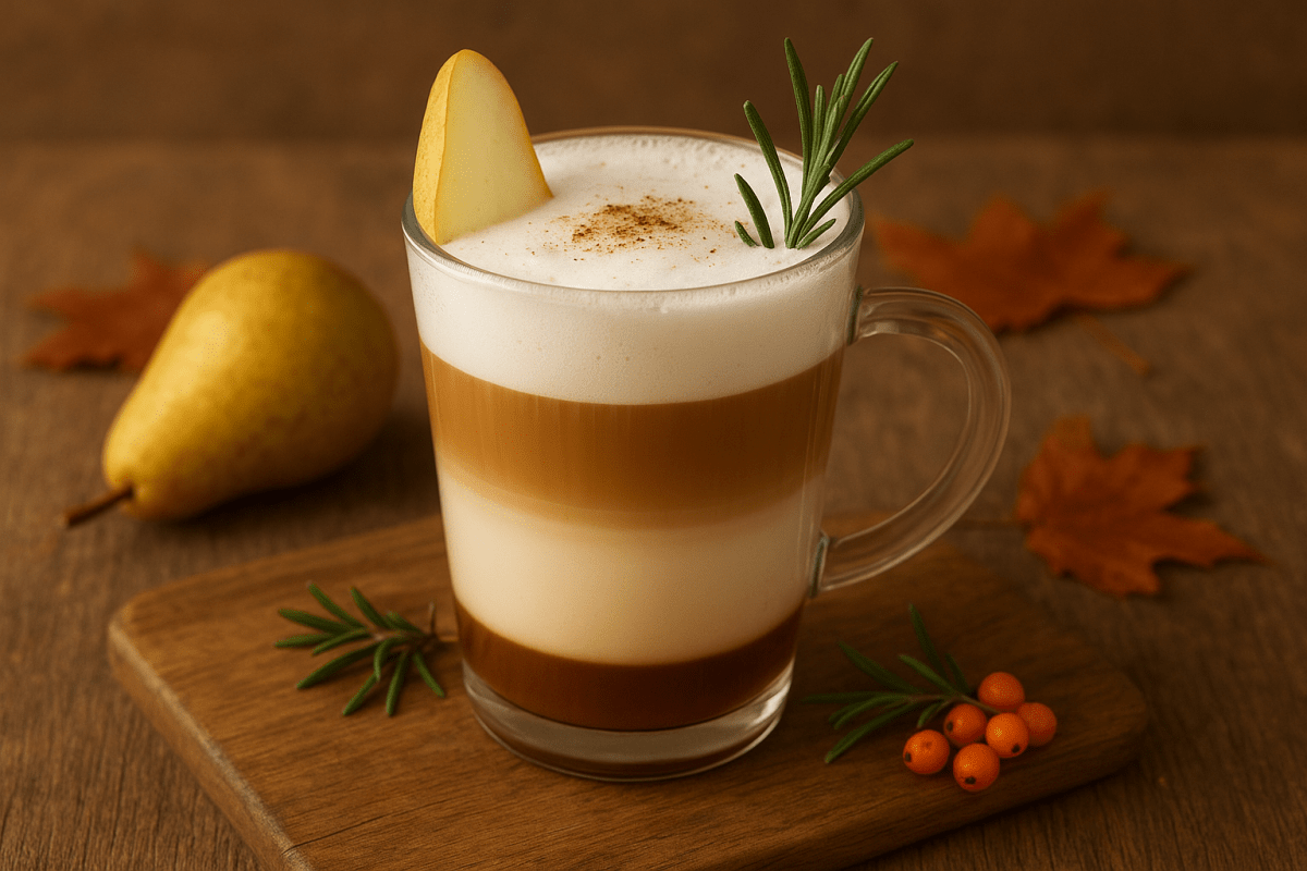 Кофейная классика с неожиданным осенним поворотом: мягкая сладость груши и свежий аромат розмарина превращают обычный латте в маленький десерт в чашке. Именно сейчас можно приготовить его из лучших сортов груш: «конференция», «дюшес», «аббат».