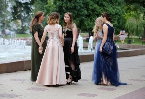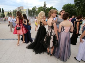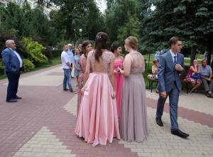 Все без исключения школы города превратились в настоящий парад мод. Выпускницы блистали роскошными нарядами. Большинство девушек выбрали длинные платья в пол, в которых они были похожи на принцесс. Юноши облачились в классические костюмы и выглядели как джентльмены.