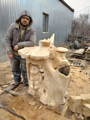 Воронежский мастер по дереву Александр Ивченко создал грустного медведя. Фотографии новой работы — оригинальной столешницы — он выложил на своей страничке в популярной социальной сети.