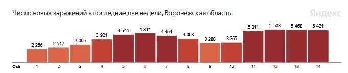 За последние сутки коронавирус подтвердился у 5 421 жителя Воронежской области. Об этом сообщил федеральный оперштаб в понедельник, 14 февраля.