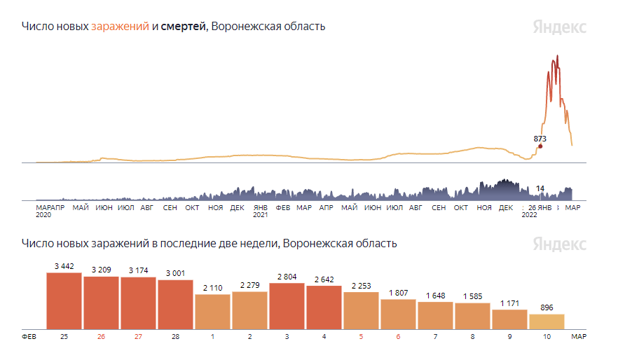 В последний раз меньше тысячи диагнозов за 24 часа ставили полтора месяца назад — 26 января в регионе выявили 873 случая ковида. С 27 января заболеваемость начала расти и достигла своего пика 18 февраля, когда подтвердился 5 781 случай. Затем пятая волна коронавируса начала отступать.