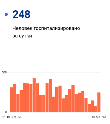 Госпитализировали за сутки 248 человек, накануне — 81, днём ранее — 148.