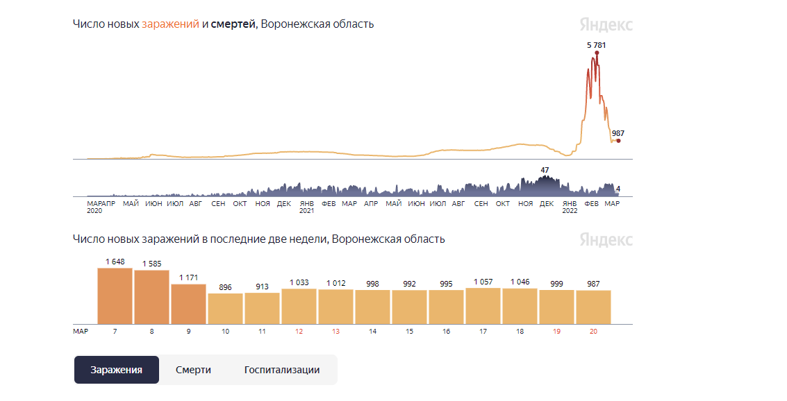 К списку жертв коронавируса прибавилось 4 жителя Воронежской области. Общее число летальных исходов составило 7 981. Это умершие с подтверждённым тестом на COVID-19.