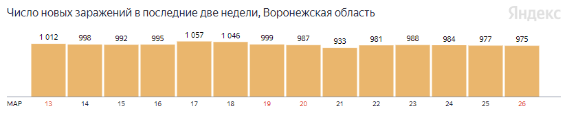 975 заболевших ковидом выявили в Воронежской области за последние 24 часа. Об этом сообщил федеральный оперштаб сегодня, 26 марта.