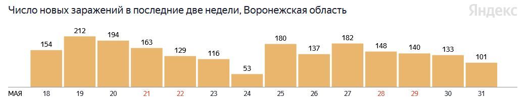 101 заболевшего коронавирусом выявили в Воронежской области за последние сутки. Об этом сообщает региональный оперштаб сегодня, 31 мая.