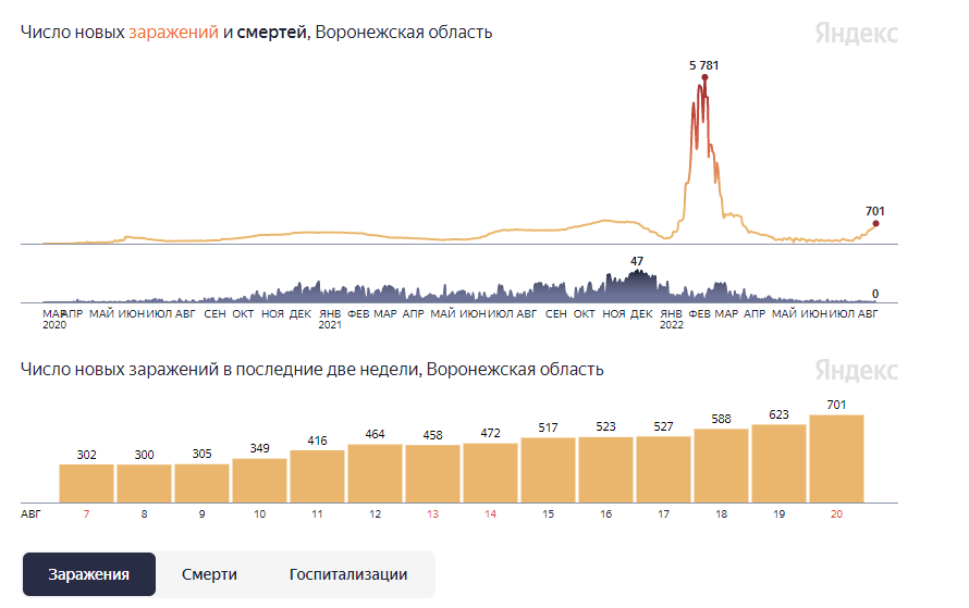 За сутки в Воронежской области подтвердился 701 случай заражения коронавирусом, с начала пандемии — 400 308. Об этом сообщил федеральный оперштаб сегодня, 15 августа.