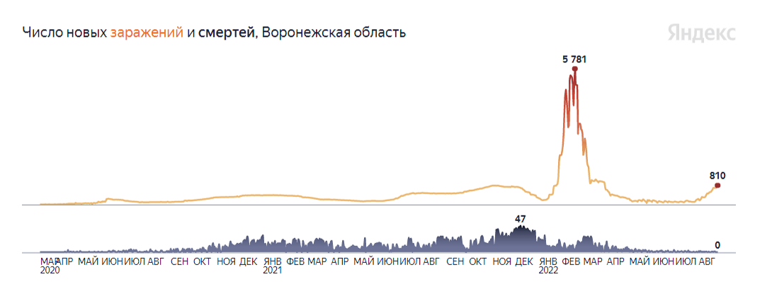 Хотя заболеваемость в Воронежской области приблизилась к показателям ранней весны, рекордов регион по этому показателю сейчас не устанавливает. Напомним, что в марте и апреле наш регион регулярно входил в пятёрку регионов с самым высоким уровнем заболеваемости, теперь же Воронежская область уступает как минимум десятку регионов страны.