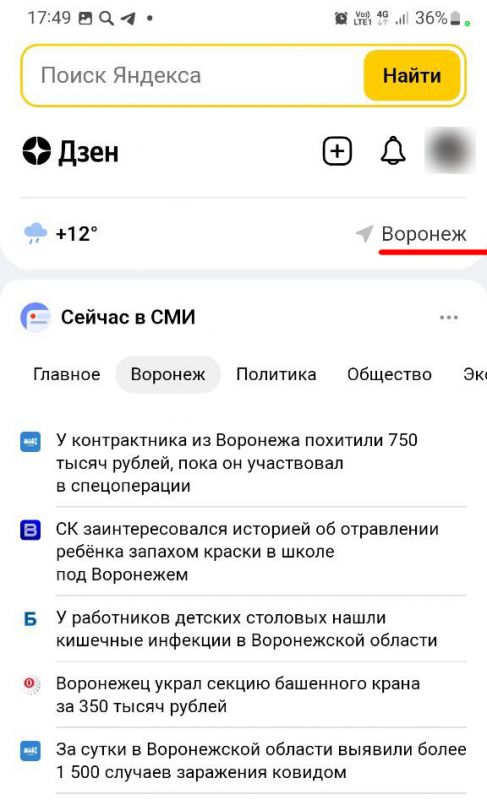 Несмотря на то что большинство пользователей при заходе в браузер переадресовывает сразу на «Дзен», многие воронежцы пожаловались, что у них пропал раздел «Новостей» на главной странице их поисковика.