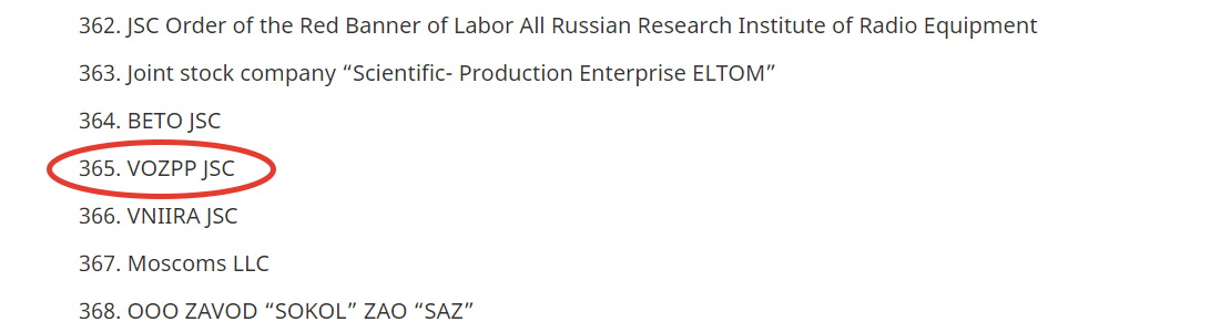Ограничения коснулись и других предприятий соседних регионов, связанных с оборонной промышленностью. Так, в списке оказался Липецкий механический завод.