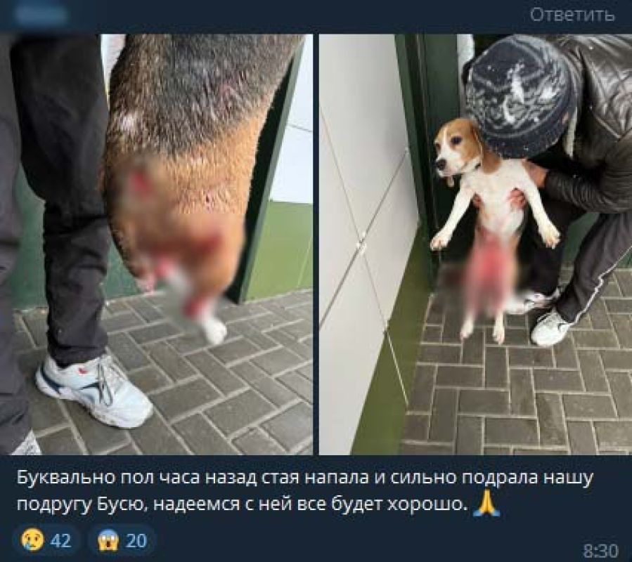 Напомним, мужчина с Бусей был во дворе и, чтобы она могла пробежаться, отпустил её с поводка. А через некоторое время он услышал громкий лай в кустах. Свора бродяг напала на бигля и начала его рвать буквально на части. Питомца отбили, но он получил серьёзные травмы. И к сожалению, спустя пять дней раненая собака умерла.