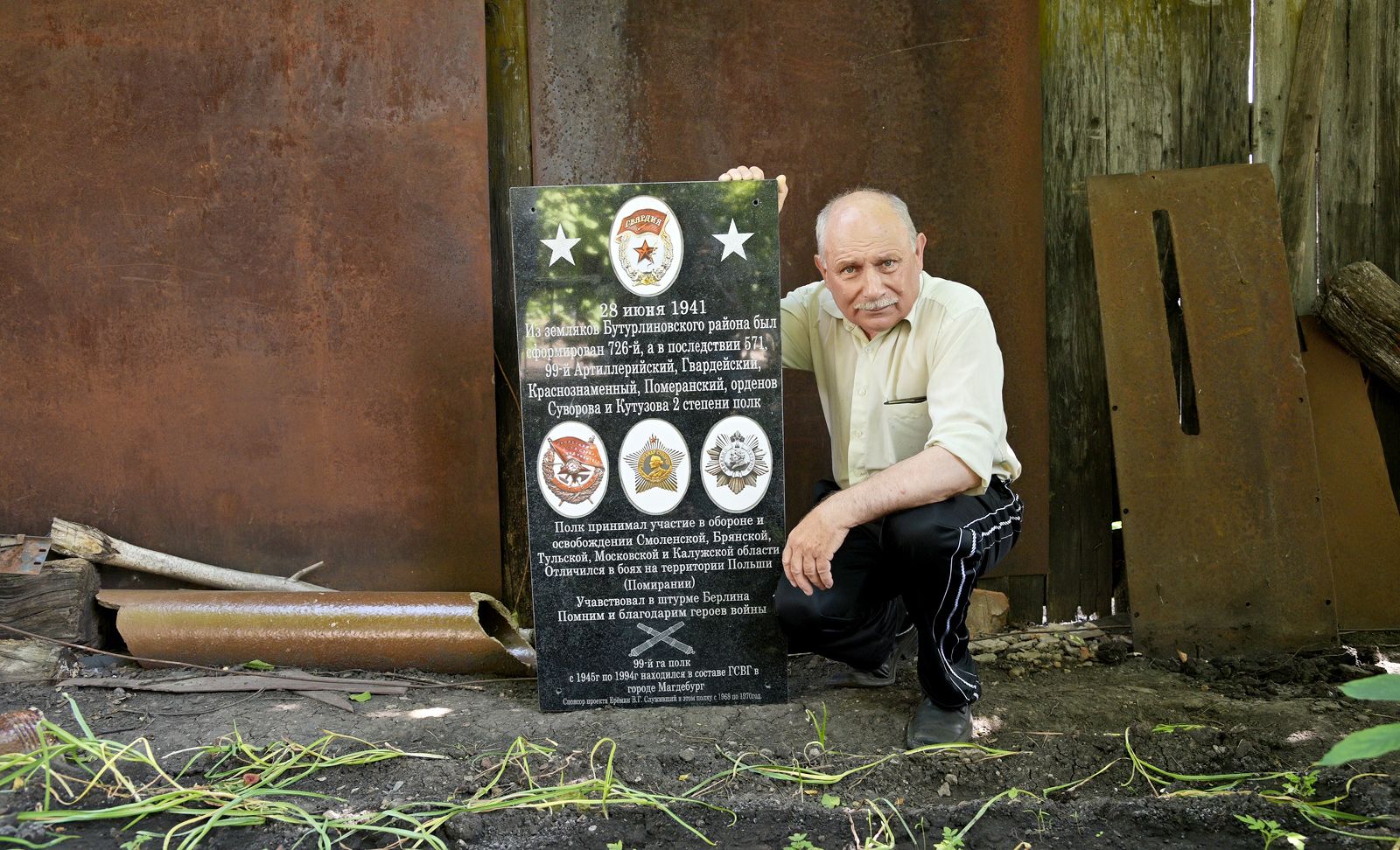 Владимир Ерёмин из Бутурлиновки последние пару лет серьёзно прихварывает: годы берут своё, да и 76 лет — возраст вполне почтенный. В 2020-м он вместе с земляком Николаем Панковым собрал немного денег и заказал мемориальную доску из чёрного гранита с информацией о дате и месте формирования 726-го гаубичного артиллерийского полка 217-й стрелковой дивизии, сформированного в Бутурлиновке в июне 1941 года.