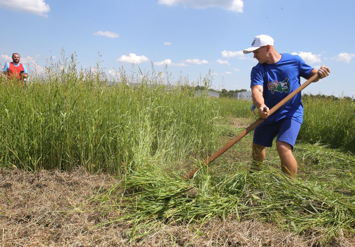 Самый зрелищный из неспортивных видов областных сельских Игр, несомненно, соревнование косарей. Пробежать по дистанции, поднять гирю, сыграть в волейбол сможет почти каждый, а вот взять в руки косу — это уже не для всех. В программе ХII областных сельских Игр три вида из 13 стоят особняком — в них сборные районов обязаны выставлять своих участников. Это старты косарей, механизаторов и дояров. Два последних подразумевают перенос и маневрирование с грузом на колесном тракторе и разборку-сборку доильного аппарата. А вот косить приходится взаправду — каждому из двух районных косарей отводится делянка площадью 5 на 5 метров и время, в которое он должен уложиться, — не более пяти минут. А потом судьи пойдут проверять — сколько нескошенных «солдатиков» (стоящих былинок) осталось на делянке, чтобы снять баллы за ошибку. Подробности — в материале «МОЁ!».