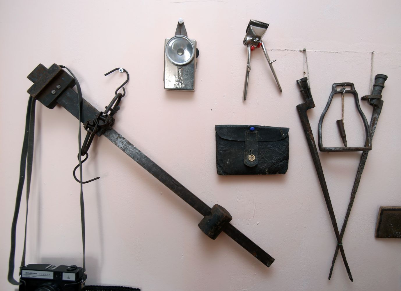 — Вот наш крестьянский безмен, на нём можно было взвешивать до 30 килограммов, — показывает хозяин. — А вот знаменитый немецкий фонарик «Даймон» с плоской батарейкой. Вот это рубель, деревянная доска для сушки белья. Она, правда, не из нашего дома, её для меня заказала по интернету моя дочь Светлана. Рядом — парикмахерская машинка для стрижки волос, я её сам купил за 500 рублей у какого-то деда на рынке «Придача».