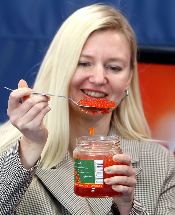 Т.Б.: «Да, и цвет приятнее. Но вот консистенция… В отличие от настоящей икры эти икринки во рту сложно поймать — они какие-то скользкие».
