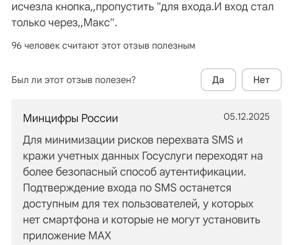 Читатель «МОЁ!» пожаловался, что не может войти в приложение «Госуслуги» без мессенджера МАХ. Об этом народный корреспондент сообщил сегодня, 5 декабря.