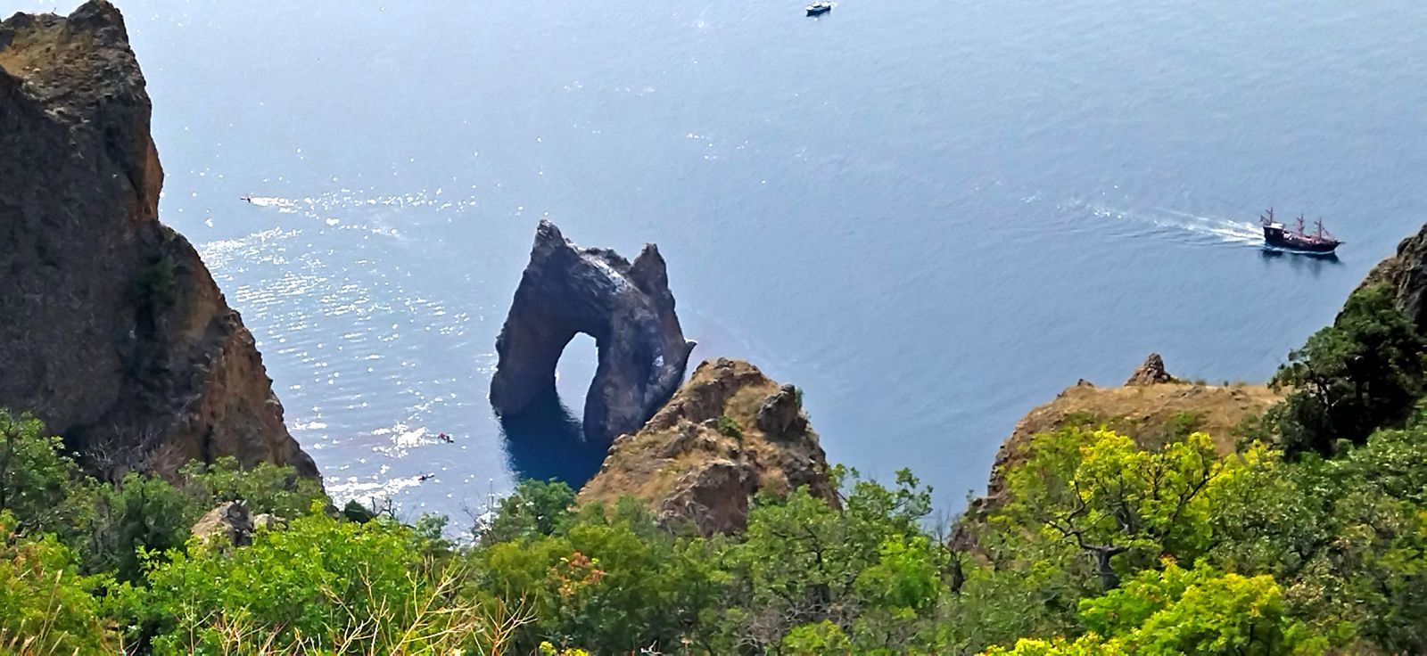 Визитная карточка этого места — вулкан Карадаг, его вы увидите из любой точки посёлка. Самые спортивные могут подняться на его вершину по туристической тропе. Арочная скала Золотые ворота у подножия Карадага — один из символов Крыма, который вы наверняка видели на сувенирной продукции с полуострова.