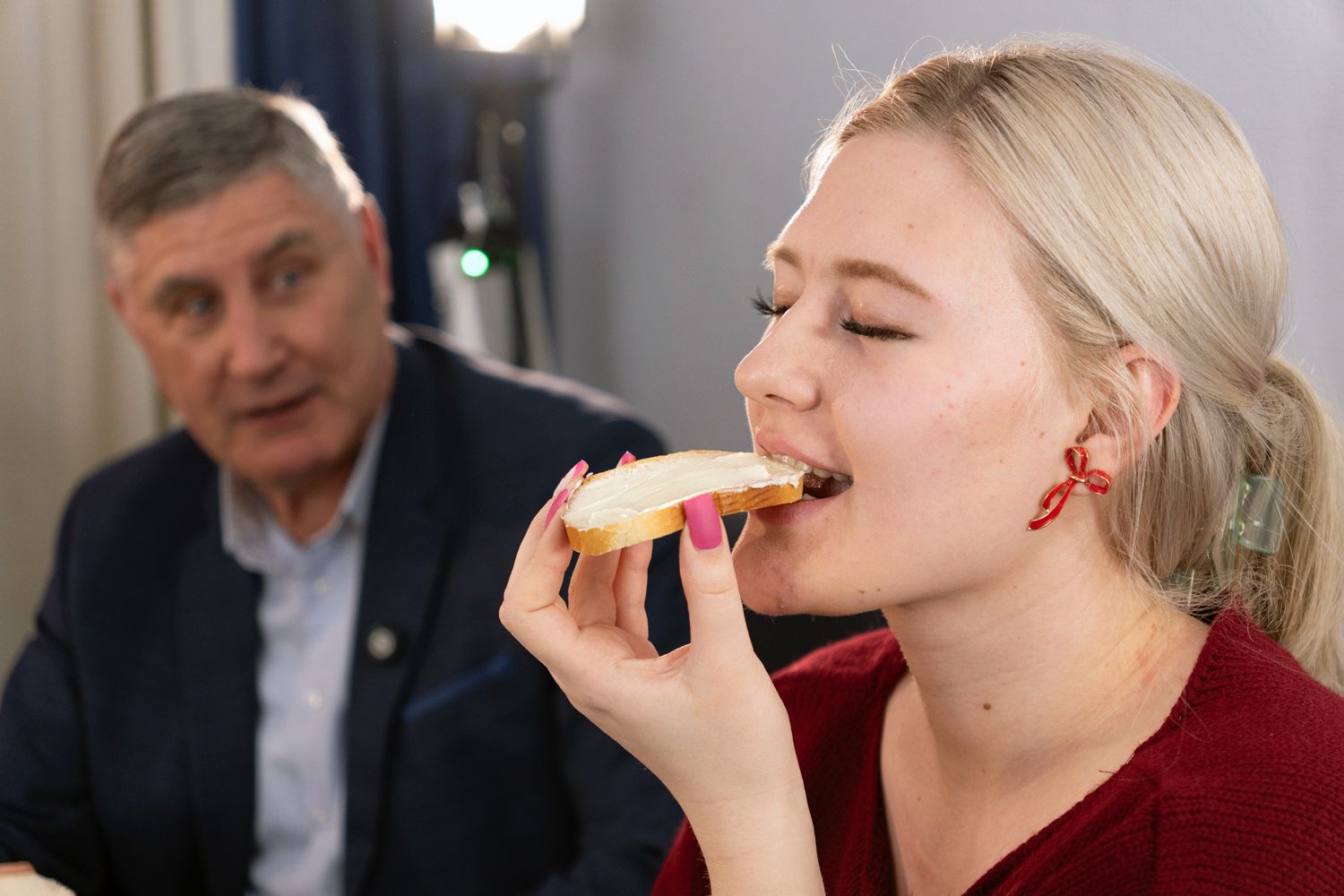 Алина: «Мне оно не очень понравилось. Может быть, я, как представитель зумеров, уже не пробовала настоящего сливочного масла. Но здесь вкус мне кажется совершенно не сливочным. Ещё раз три можно поставить? Давайте три».