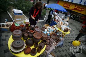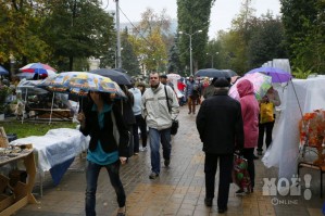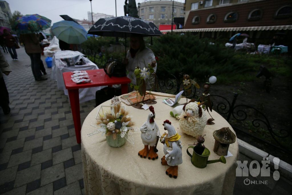 С самого утра сегодня, 21 сентября, в Воронеже моросит дождь. Из-за этого в День города совсем немного людей. Непогоды не испугались иностранные студенты, которые с любопытством разглядывали выставку поделок народных умельцев, которые тоже не спешили уходить.