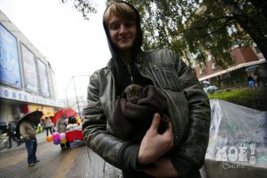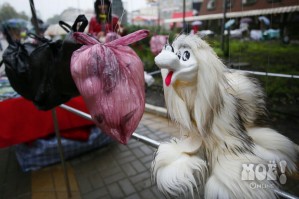 Пока игрушечных и настоящих животных прятали под зонтами. После обеда дождь почти прекратился. И на центральных улицах появились горожане, решившие прогуляться по праздничному городу.