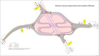 Из-за дорожных работ турбокольцо будет перекрыто — вместо него движение будет осуществляться по большому кольцу. Оно расположится на съездах будущей двухуровневой развязки. Пересечение Остужевской и Минской улиц на эти выходные станет классическим кольцевым перекрестком. Временную разметку по новой схеме уже нанесли.