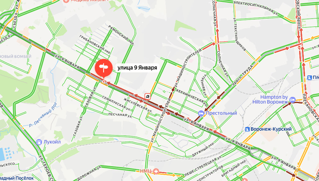 «Стоит от горизонта до горизонта». О жуткой пробке на улице 9 Января сообщили воронежцы