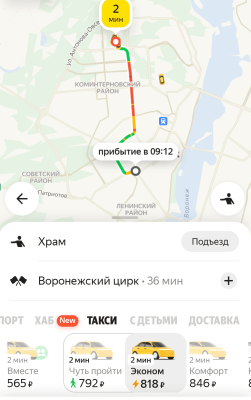 Чуть меньше придётся заплатить, чтобы доехать от остановки «Храм» до цирка – 818 рублей.