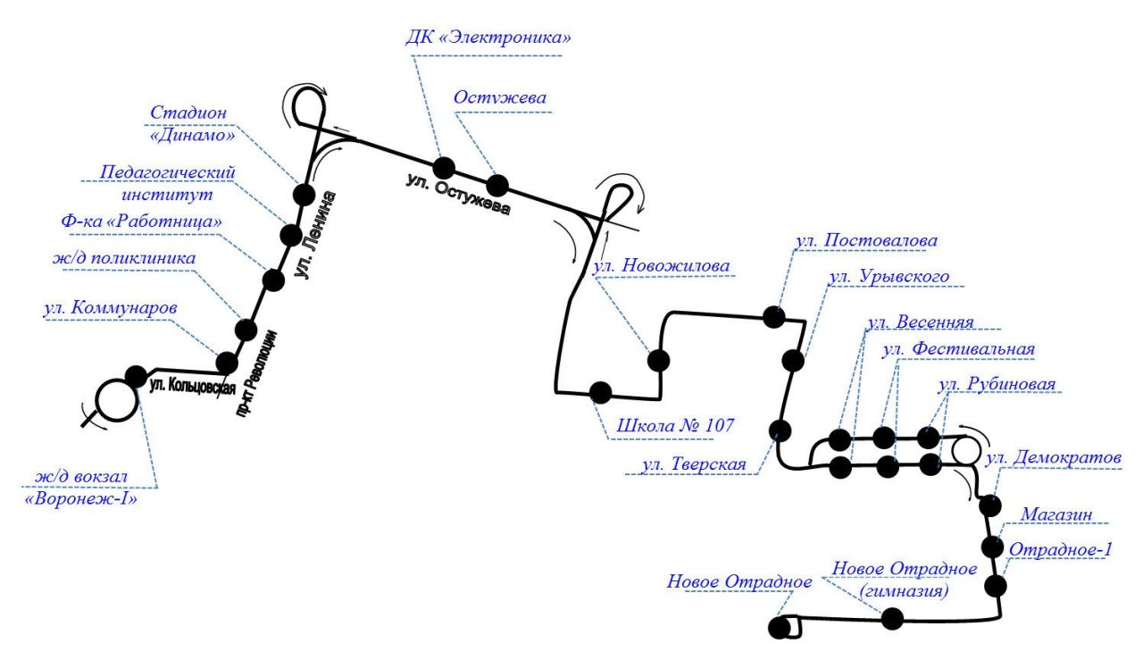 В Воронеже конечной остановкой станет ж/д вокзал «Воронеж-1» на площади Генерала Черняховского, 1В.