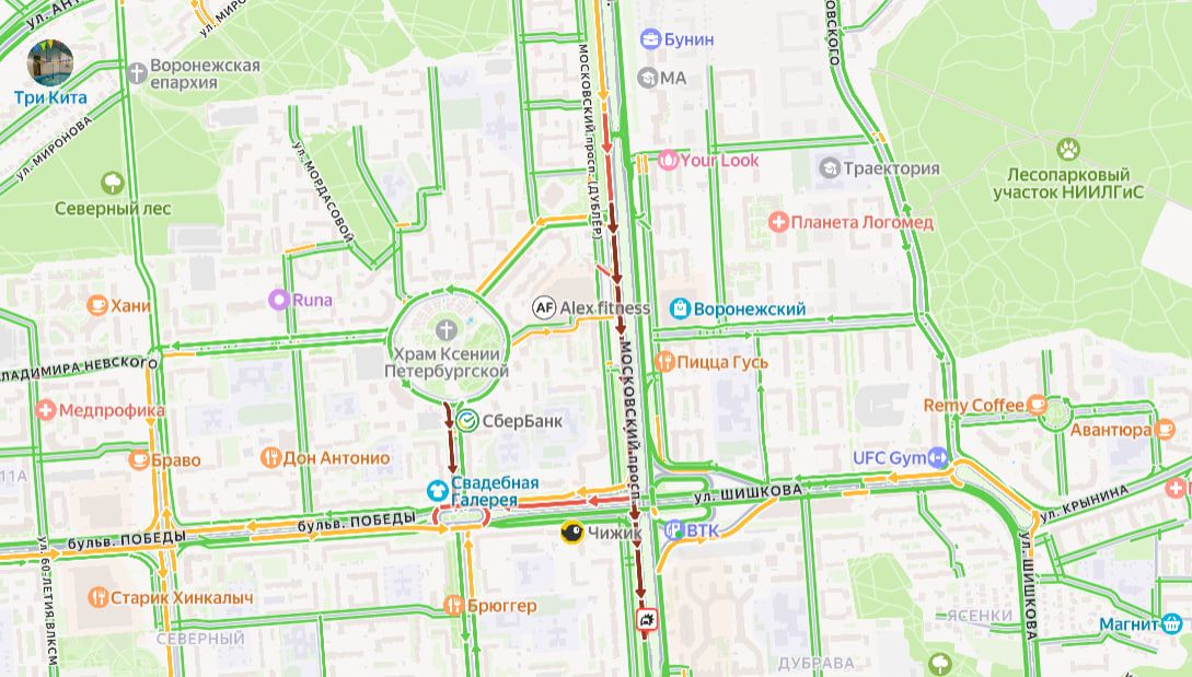 Километровая пробка из-за ДТП внезапно сковала Московский проспект