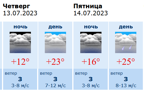 В ночь на пятницу, 14 июля похолодает до +11 — 13 градусов, скорость ветра 3 — 8 м/с.