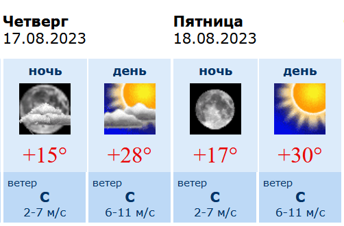 Прогноз погоды в Воронеже на четверг, 17 августа