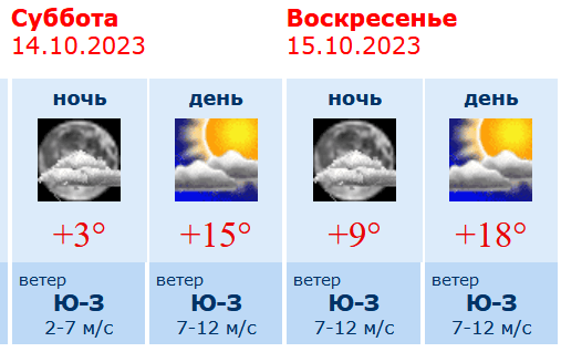 Прогноз погоды в Воронеже на субботу, 14 октября