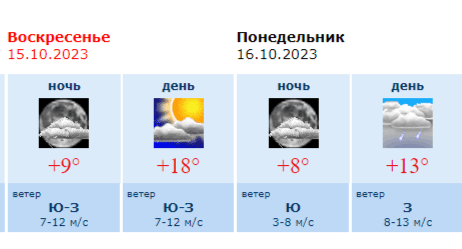 Прогноз погоды в Воронеже на воскресенье, 15 октября