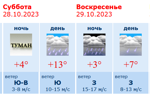 Прогноз погоды в Воронеже на субботу, 28 октября