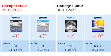 Прогноз погоды в Воронеже на воскресенье, 29 октября