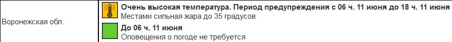Оранжевый уровень погодной опасности из-за аномальной жары введут в Воронежской области завтра, 11 июня. Информация об этом появилась на сайте Гидрометцентра.