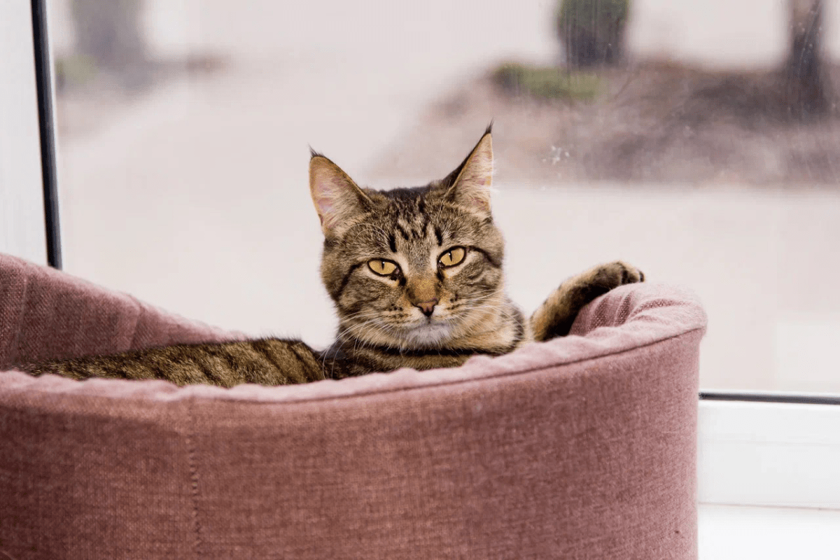 На фото полосатая красавица у окна, чего же ждет она? Эта озорница так ждет, что у сотрудников тайм-кафе найдётся минутка, чтобы с ней поиграть. А лучше, чтобы пришел хозяин и забрал её к себе домой.