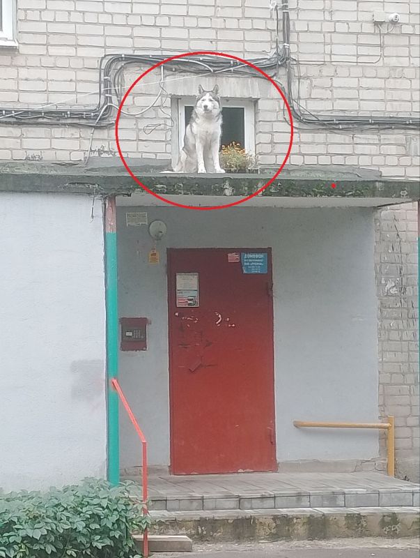 Горделивого хаски, следящего за прохожими с козырька подъезда, увидели воронежцы. Необычное место для «выгула» выбрал пёс, живущий в доме 1а на Остужева.