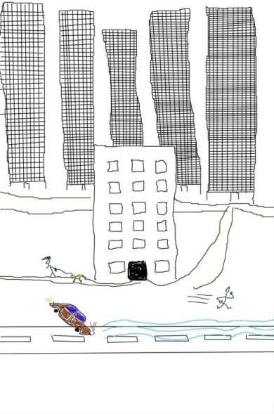 Я гость города, нарисовал сегодня утром рисунок дома моих дедушки и бабушки, у которых я летом проводил своё детство. Сегодня переписывался и с сестрой, которая тоже приезжала в Воронеж на лето сюда, в детстве. Рисунок отражает впечатления о нашем доме-аборигене среди мегаполисной среды в квартале Берёзовая Роща. Люди, машины, несутся, снуют, жизнь кипит, а этот дом - всё, что осталось от детских воспоминаний нашего двора.