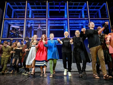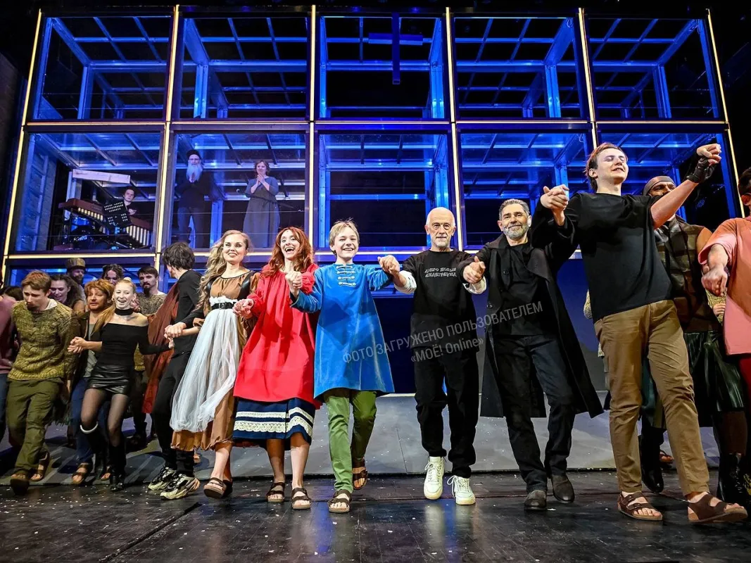 И вообще не очень понятно, как это назвать. Это точно не классический театр, но пои этом и классический театр. Это какое-то синтетическое искусство - текст Водолазкина, прекрасная живая музыка Сергея Гребстеля и Варвары Котовой, игра актеров и не игра, а просто чтение текста, хореография, сценография, костюмы - всё это вместе вызывает очень сильные эмоции. Многие в зале плачут, я видел.