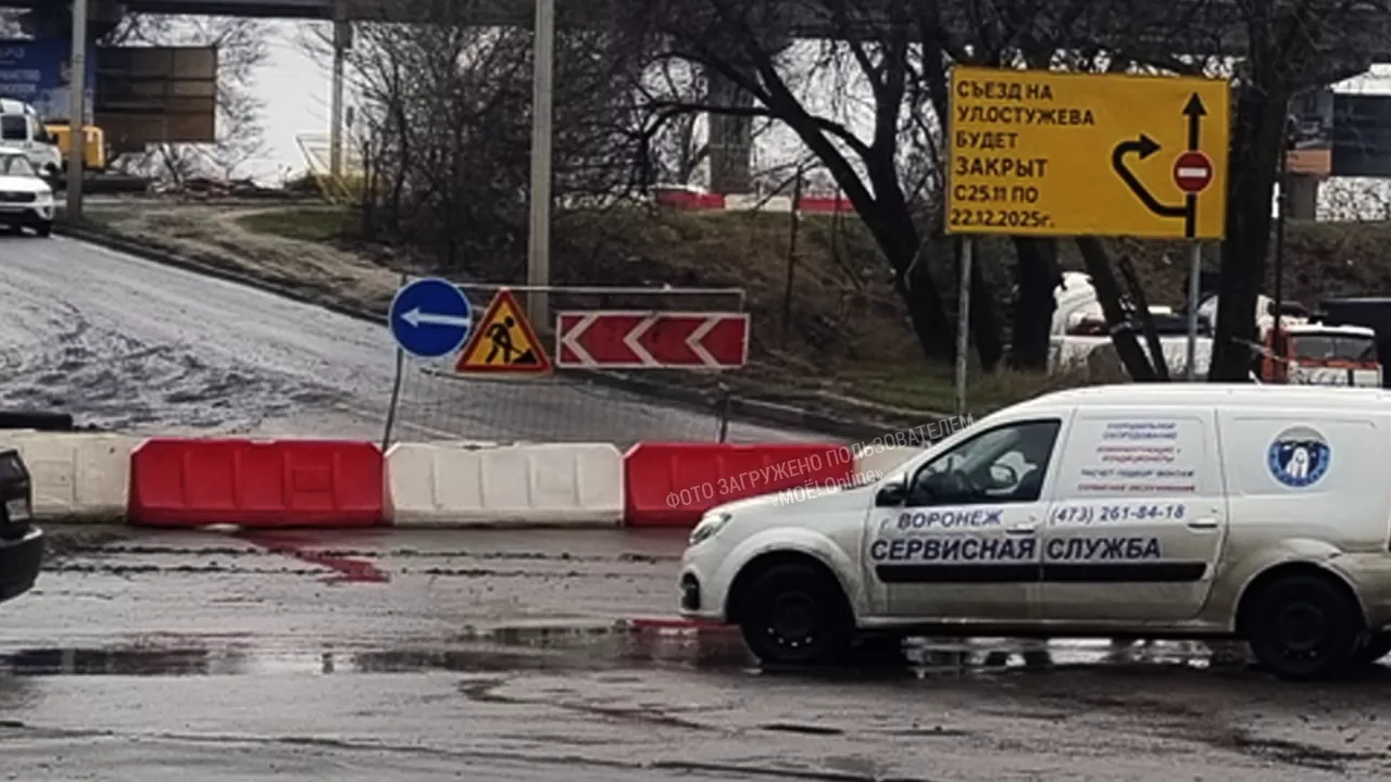 При възде на мост стоит знак со схемоой объезда и датой действия с 25.11.2025г. по 22.12.2025г.